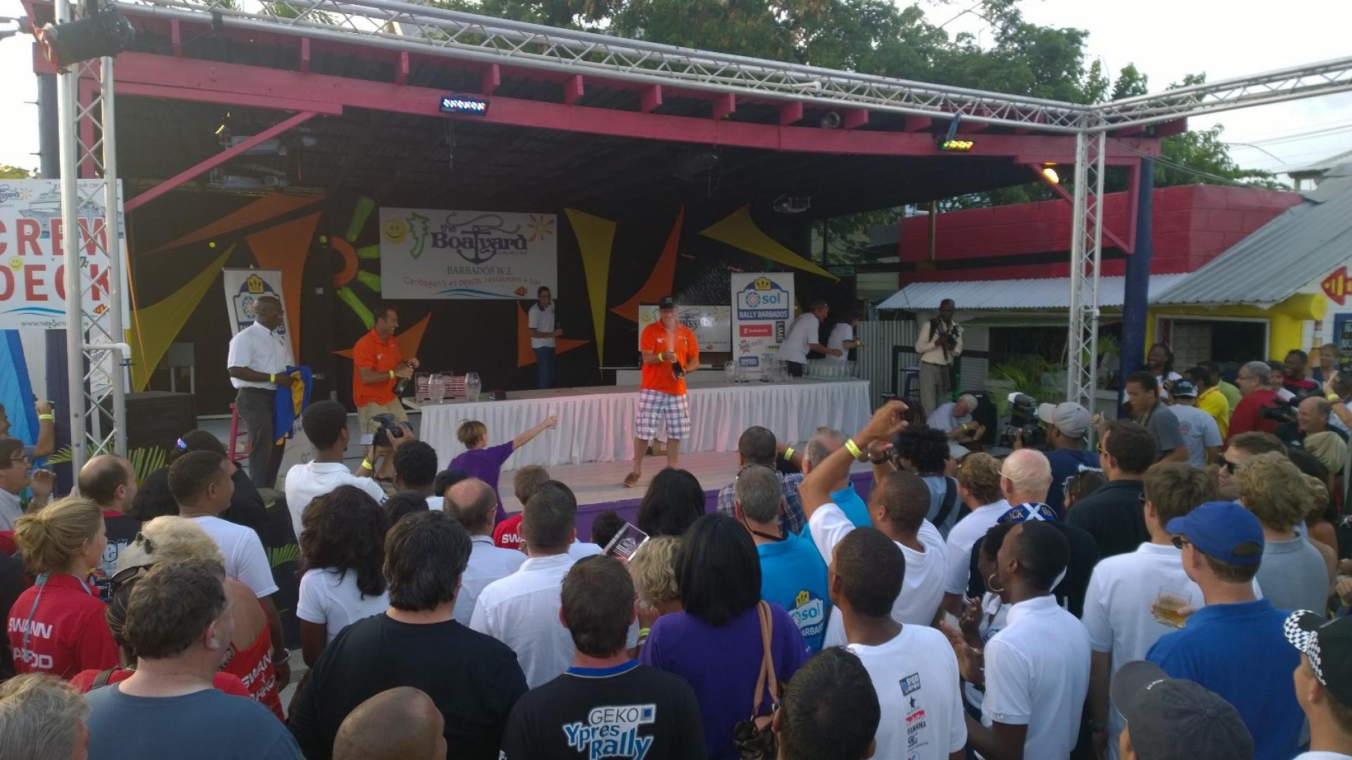 After the results were made final yesterday (Monday), ‘The Sheriff’ and co-driver Louis Venezia received their trophies from Ezra Prescod, general manager of Sol Barbados, at a packed Prize-giving at The Boatyard beach bar in the island’s capital, Bridgetown.